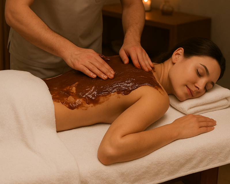 Warm chocolate melts away stress, hydrates the skin, and fills the senses with pure relaxation.